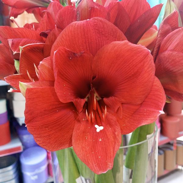 Наименование: Букет красных амарилисов Феррари — страсть и элегантность в каждом цветке